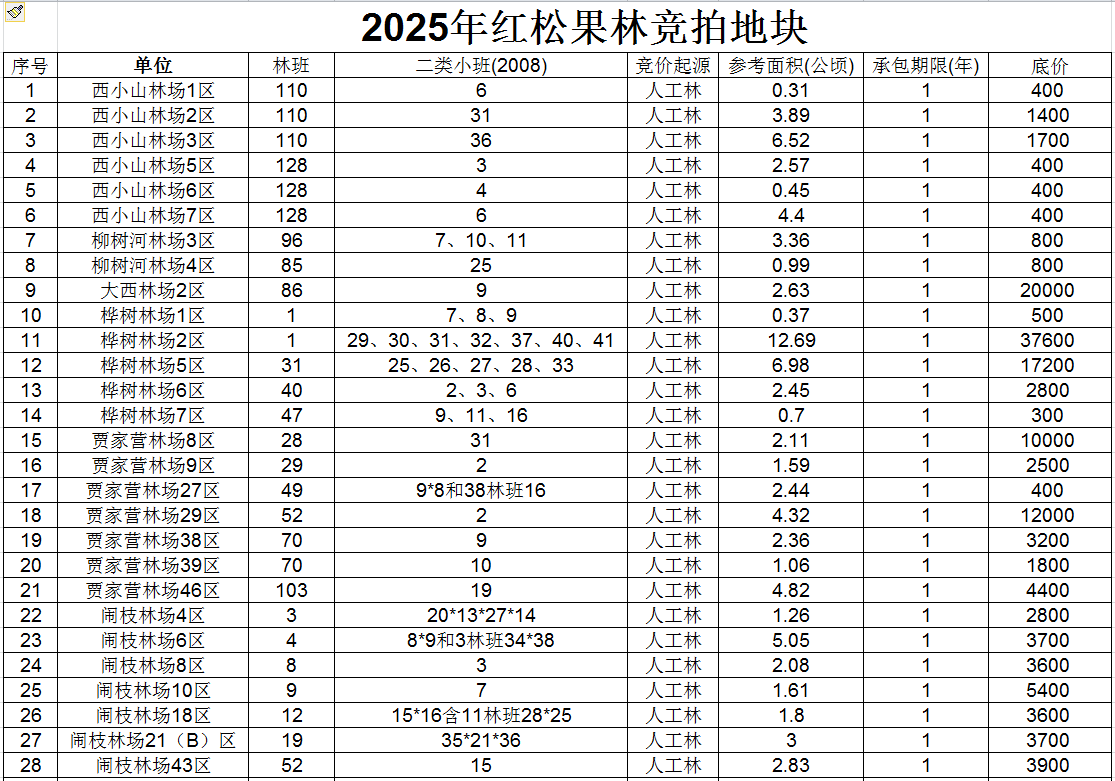 吉林省恩惠科技有限公司受委托方吉林森工臨江林業(yè)有限公司委托,對委托方125個標的的紅松果實采集權(quán)進行公開拍賣。為確保本次競拍公開、公平、公正進行,現(xiàn)將相關事宜通知如下: